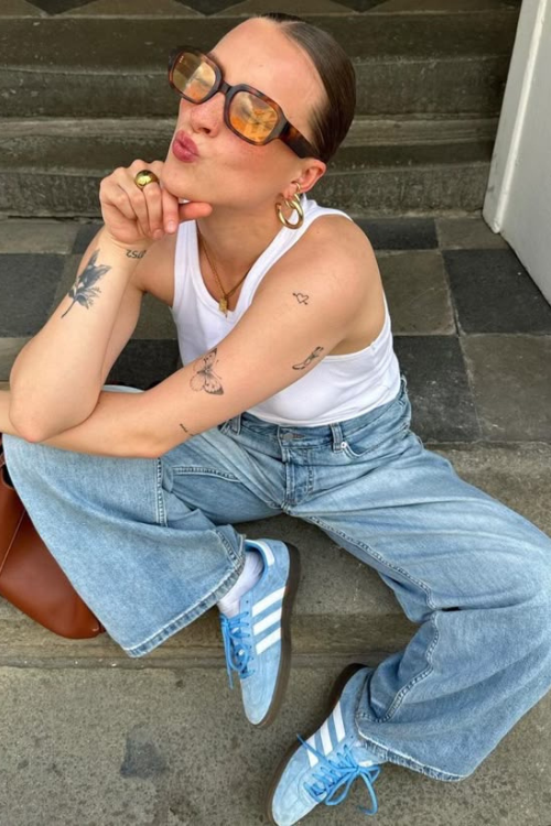 Classic never goes out of style. Pair your go-to denim with a simple tank top and Spezial sneakers for a look that’s effortless but polished. Pro tip: Add a statement belt or layered necklaces to elevate casual vibes.