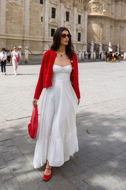 A bright cardigan is the easiest way to refresh your neutral maxi dresses. This cardigan on white maxi dress gives an extra flair and trendy look.