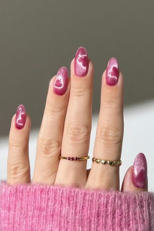 Abstract meets adorable! Swirly Heart Cat Eye Nails are for the bold romantics who love a modern twist.