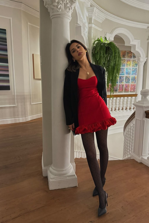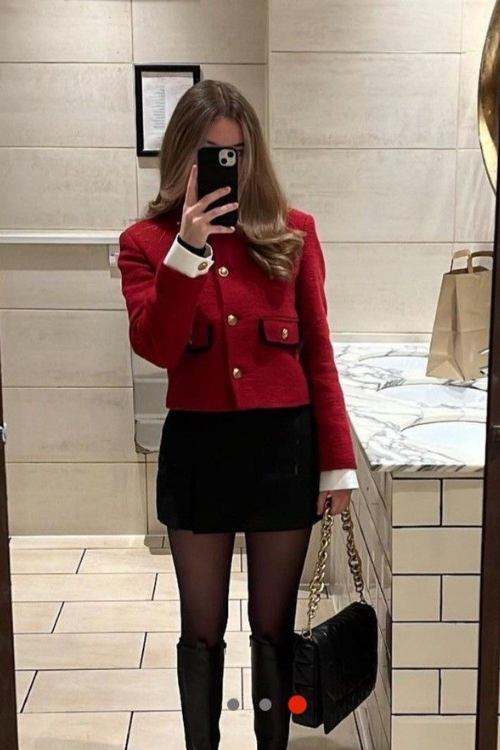 A red mini already screams holiday spirit, but add a blazer and suddenly you’ve got a power outfit.