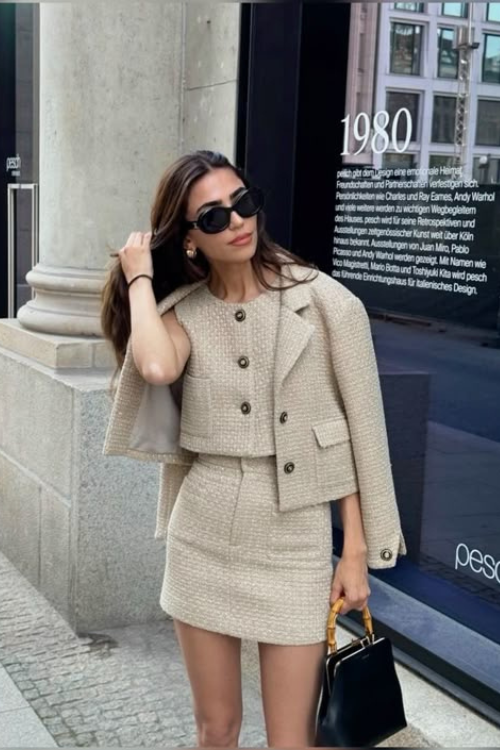 Tweed is the heartbeat of the old money wardrobe — structured, smart, and timeless. A matching set takes zero effort but delivers full impact.