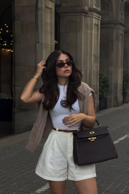 Minimal but mighty — that’s the motto. A crisp basic top tucked into pleated shorts can easily pass as “old money casual.”