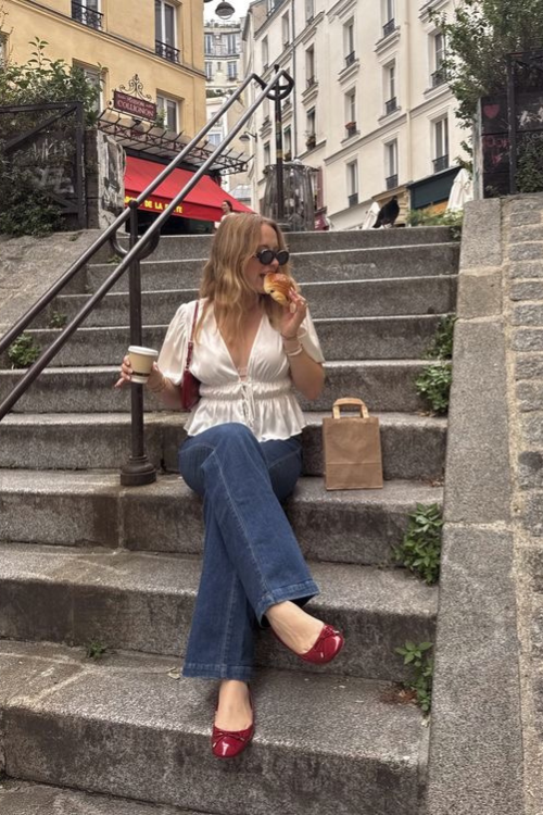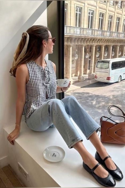 A tie-front top with denim feels relaxed but intentional, which is exactly the Paris formula. It’s perfect if you like soft structure without looking overly styled.