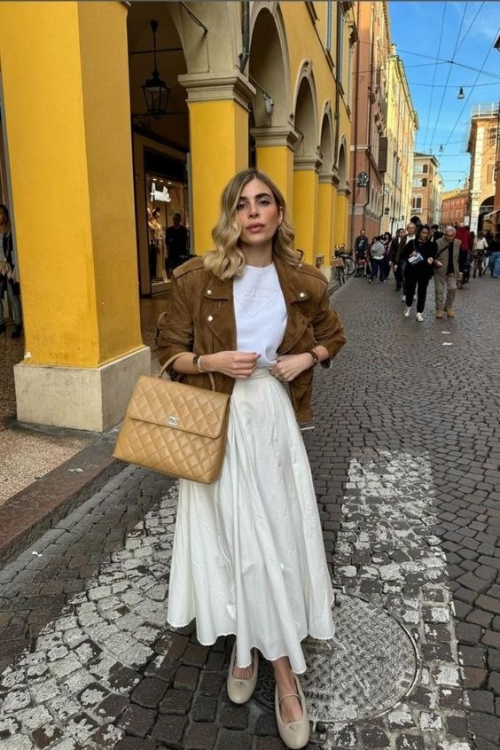 A structured jacket paired with a maxi skirt creates beautiful contrast between sharp and soft. This look works well for those who appreciate elegance with movement. Stick to muted tones and let the skirt fall cleanly without excessive volume.