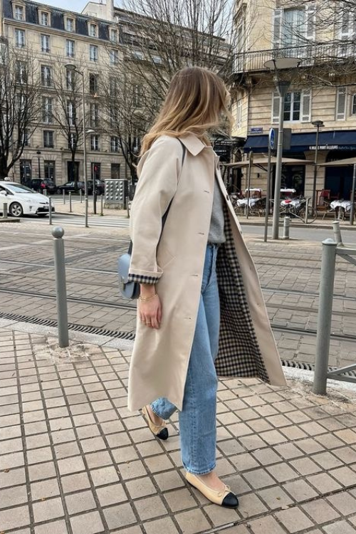 A crop trench coat instantly sharpens simple denim without feeling heavy or formal. It’s perfect for transitional Paris weather when you want structure but still need ease.
