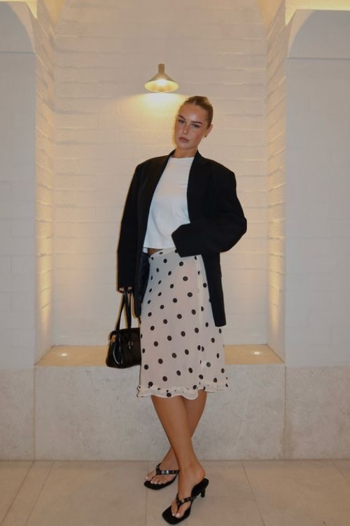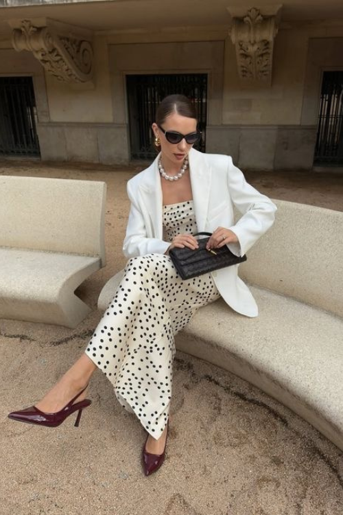 If there’s one print that never flirts with the “too much” zone, it’s the polka dot outfit. Effortlessly feminine, a little retro, and always camera-ready — it’s that girl who looks chic without even trying.