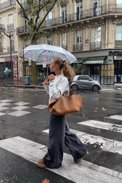 But it doesn’t have to be like that. The right rainy day outfits can be practical and look good—think cozy layers, smart pieces, and outfits that handle the weather without giving up on style. Basically, you can stay dry and look put-together (yes, both can happen). Keep scrolling, because your rainy day wardrobe is about to get a serious upgrade.